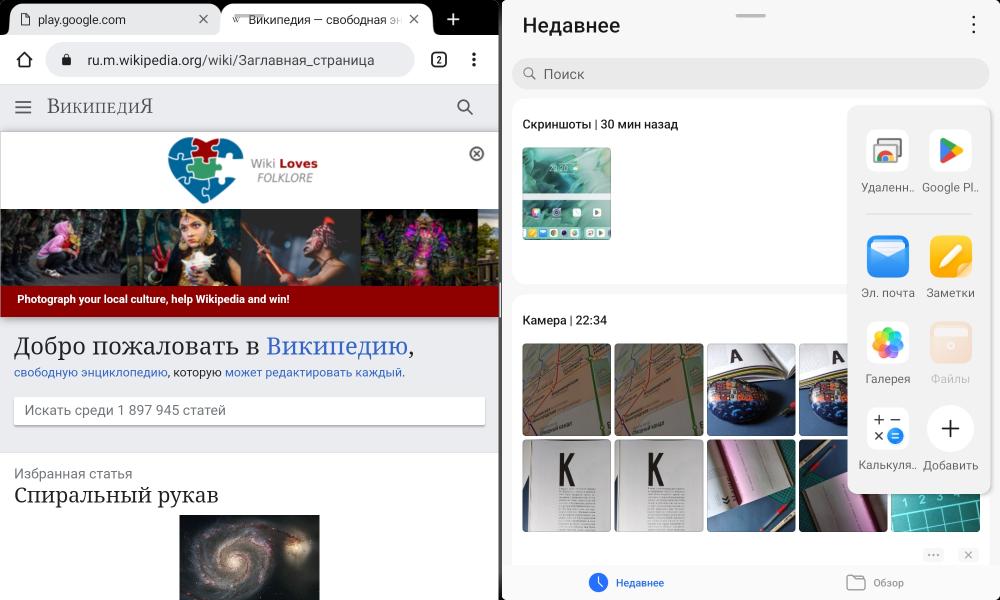 Одна из главных фишек HONOR Pad 8 — возможность транслировать экран своего смартфона прямиком на планшет. Точнее, это не трансляция в привычном понимании, а полноценное воспроизведение интерфейса смартфона в отдельном окне. Можно перетаскивать файлы, использовать буфер, и все это без проводов, да еще и в нормальном исполнении, без ввода IP-адресов, паролей и прочей ненужной обычному пользователю информации. Все это реализовано на базе Android 12 с Magic UI 6.1 поверх оригинальной системы.