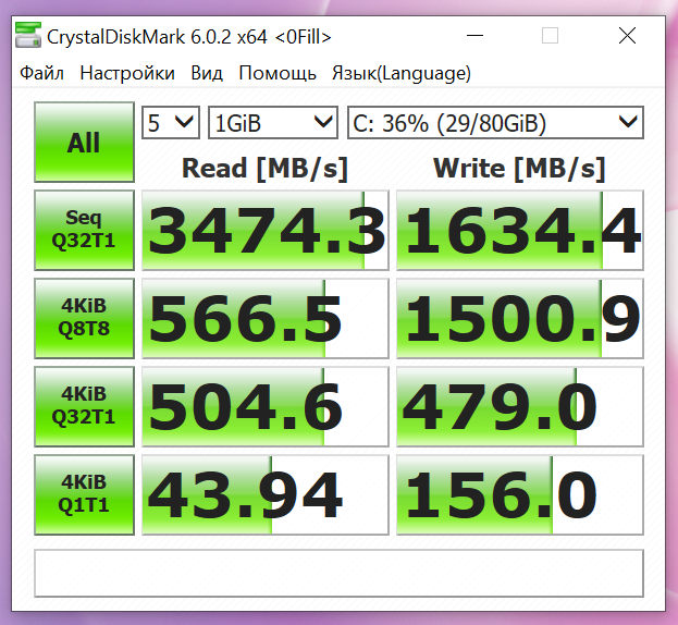 Нет, работает он очень быстро. Скорость последовательного чтения в CrystalDiskMark колоссальная — 3747 Мбайт в секунду. Правда, запись происходит вдвое медленнее, но всё равно это очень высокие показатели, больше вам вряд ли потребуется когда-либо в жизни. Но вот объём в 256 ГБ меня смущает. Поэтому, будем надеяться, SSD не распаян, как в прошлогоднем Matebook X. В старшей, недоступной в России конфигурации. Matebook 13 идёт уже с более солидными 512 ГБ.