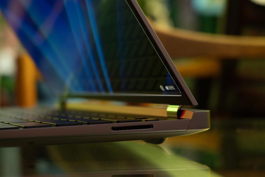 Порты — отдушина для тех, кто устал от USB-C-only жизни. Здесь два USB 3.2 Gen 1, HDMI 2.1 с поддержкой 8K, полноценный Thunderbolt 4, USB-C, аудиоразъём 3,5 мм и даже про слот для SD-карт не забыли.