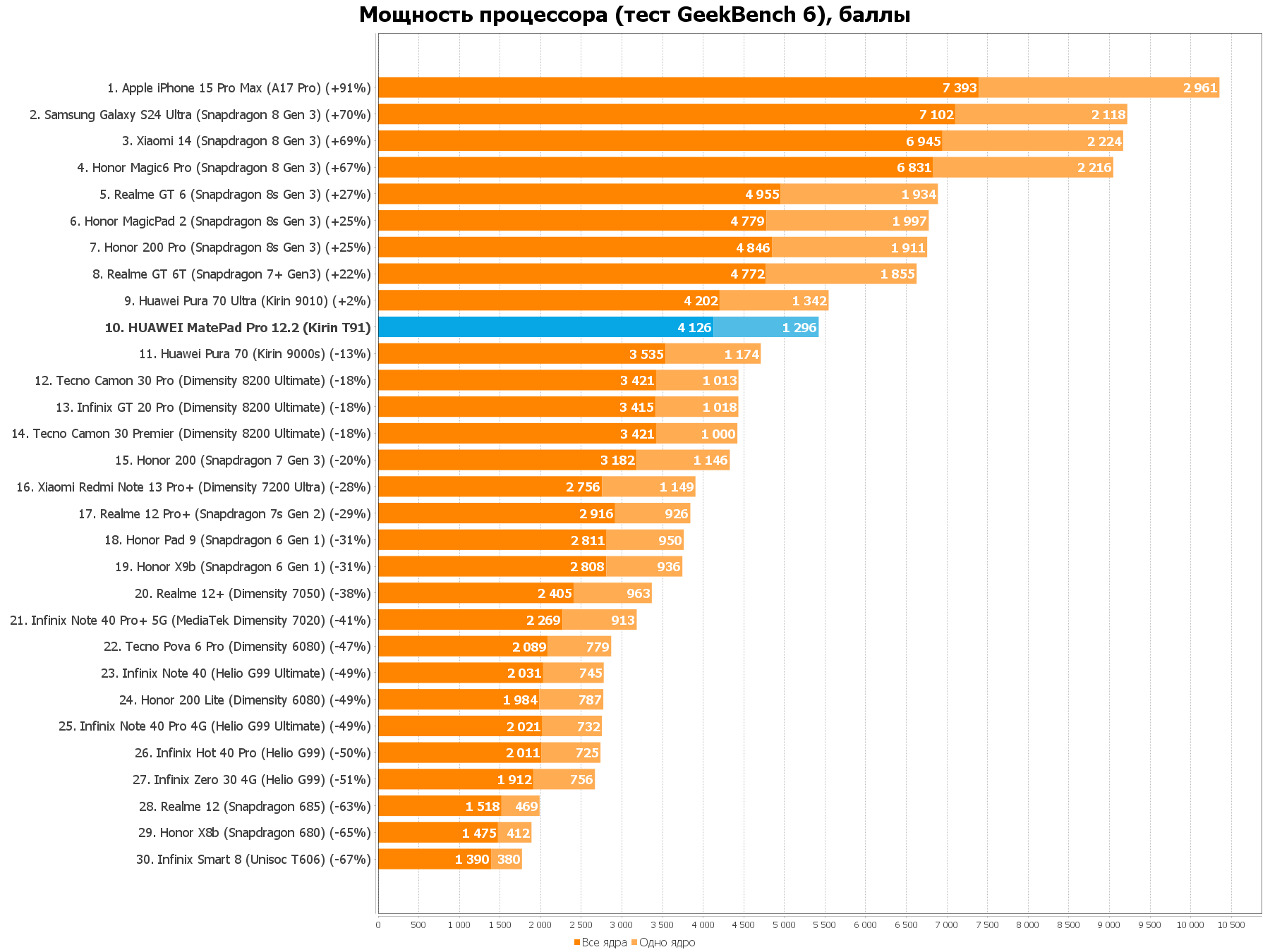 В планшете используется процессор собственного производства Kirin T91 (7 нм). Профильные сайты не могут определиться с количеством ядер у него внутри: часть ресурсов считают, что у процессора 12 ядер, а некоторые уверены, что их всего лишь 8. HUAWEI сообщает, что их, все-таки, 8.