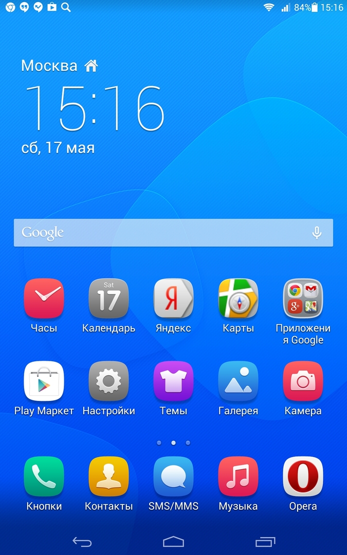 Стартовый экран украшает папка с почти полной коллекцией приложений Google: целых девятнадцать штук, не считая Play Маркет и программ, которые являются неотъемлемой частью Android. Имеется даже «Google Пресса» — малоизвестный и слабый клон Flipboard, предназначенный для чтения новостей.