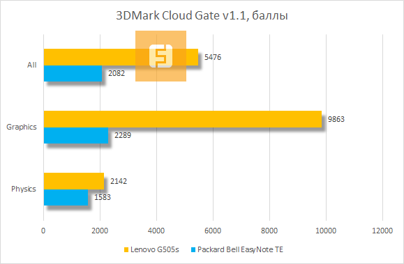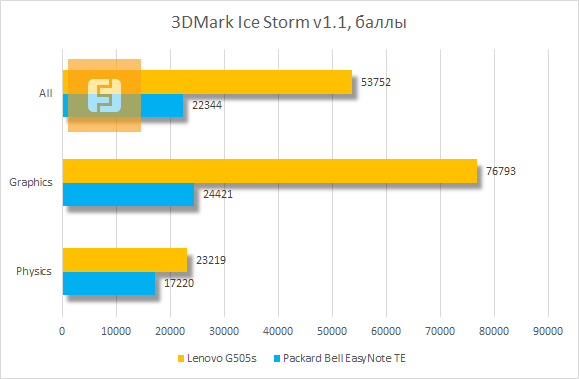 В тройке 3DMark закономерно лидирует ноутбук Lenovo G505s. Его победа обусловлена наличием на борту дискретной видеокарты AMD Radeon HD 8570M вкупе с интегрированной графикой AMD Radeon HD 8650M. Что любопытно, практически везде Lenovo G505s оказывается наравне с ноутбуками, комплектующимися дискретной видеокартой NVIDIA GeForce GT 740M, отнюдь не считающейся слабой по меркам мобильных ускорителей.