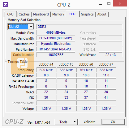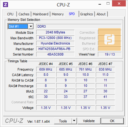 Память6 Гбайт, DDR3, 1600 ГГц, Dual Channel1x 4 Гбайт, DDR3, 1600 МГц