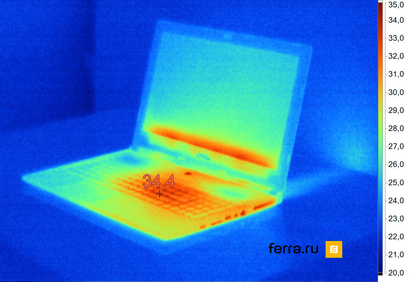 После трёх часов в Battlefied 4 местами температура доходила до очень высоких величин. Порядочно нагрелась середина клавиатура, но WASD и клавиши-стрелки всё ещё были не теплее температуры тела. Горячее всего были всё те же вентиляционные отверстия на нижней панели, поэтому придётся потрудится, чтобы найти позу, при которой ноутбук во время продолжительных баталий можно примостить на коленях.