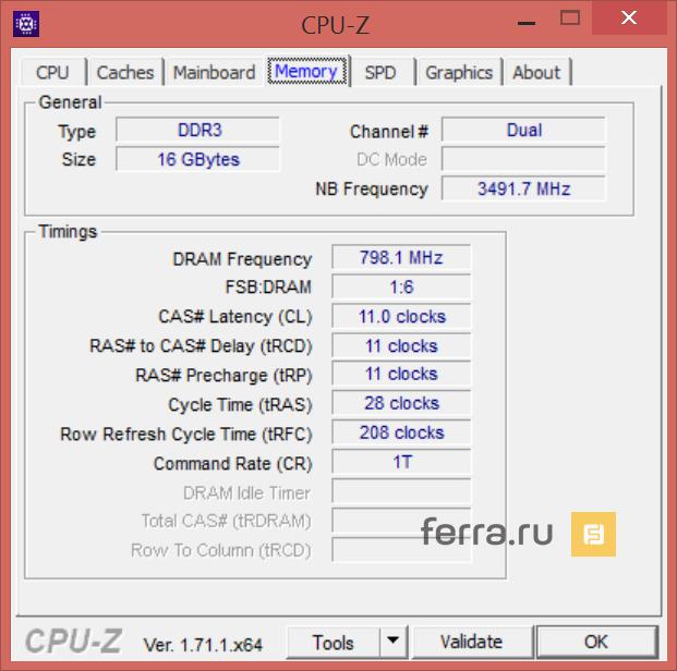 Оперативная память2х 8 Гбайт, DDR3, 1600 МГц, Dual Channel