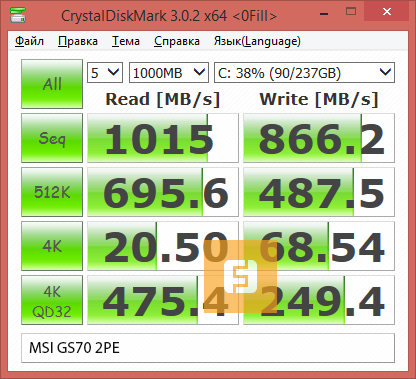 Жёсткий диск GS70 Stealth Pro продемонстрировал адекватную для заявленным характеристикам производительность.