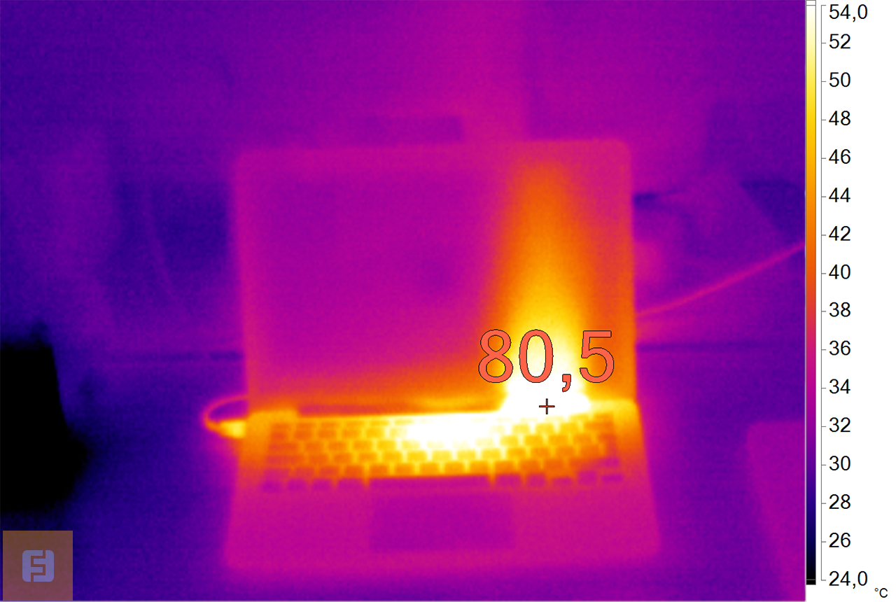 Измерения температуры ноутбука производилось при помощи профессионального тепловизора Fluke Ti400. Выражаем благодарность компании Fluke за предоставленное устройство, а также содействие в совершенствовании тестовой лаборатории.
