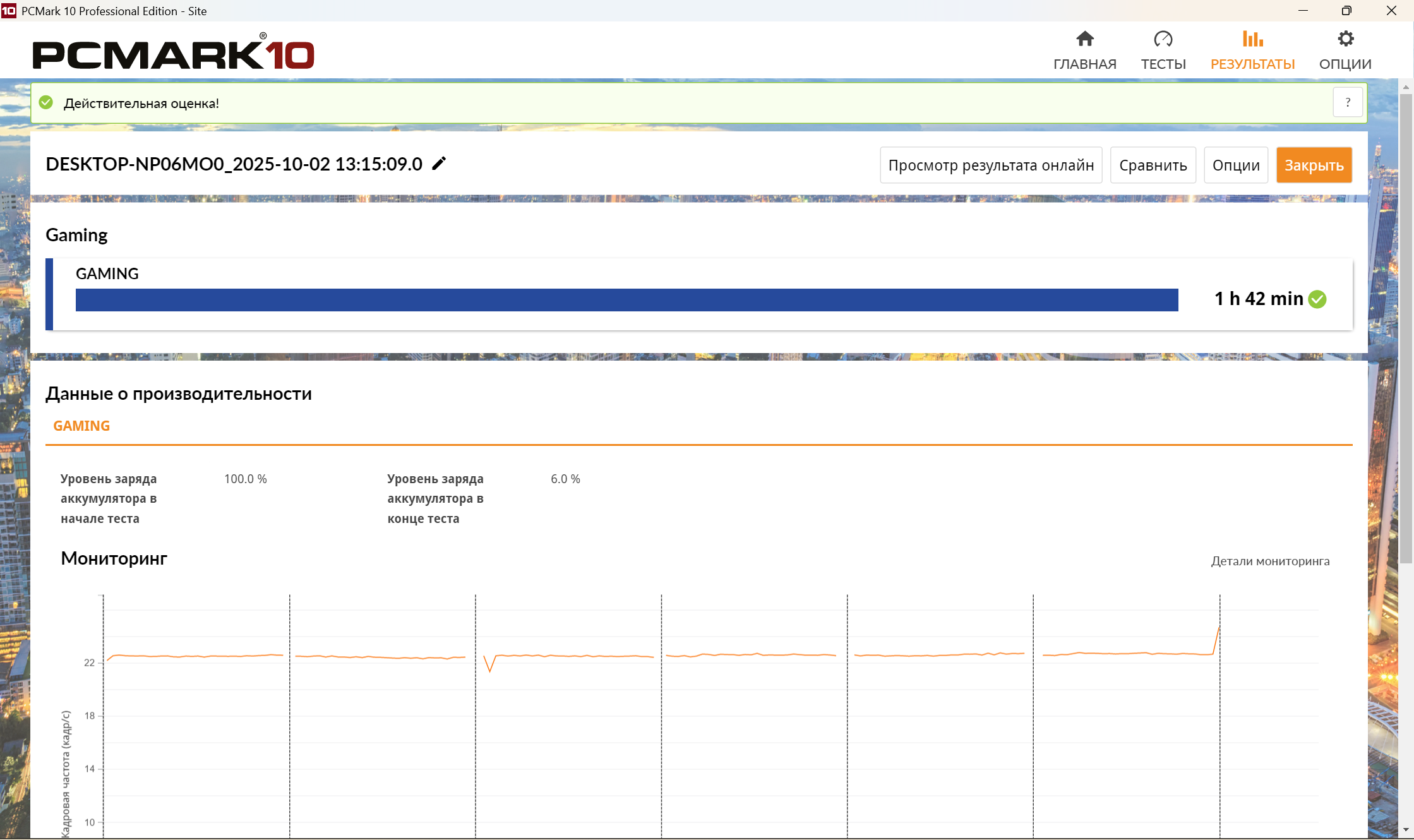 Вообще-то на Radeon 660M можно рубиться в игры, прикиньте! На супер-лёгком ноуте! Обычно в ноутбуках 1.0 процессорам выделяют 15 Вт TDP (потому что ноут сверхлёгкий, аккумулятор маленький, корпус сверхтонкий — если позволить процессору греться больше, он будет троттлить и «обcepаться»), но тут процессор маслает вплоть до 35 Вт (6 ядер + встройка) и прекрасно себя чувствует. Потому что Ryzen 5 Zen 4 (5000) и раньше не были супер-горячими, а с переводом на 6 нм вообще как нельзя лучше подходят для компактных ноутов.
