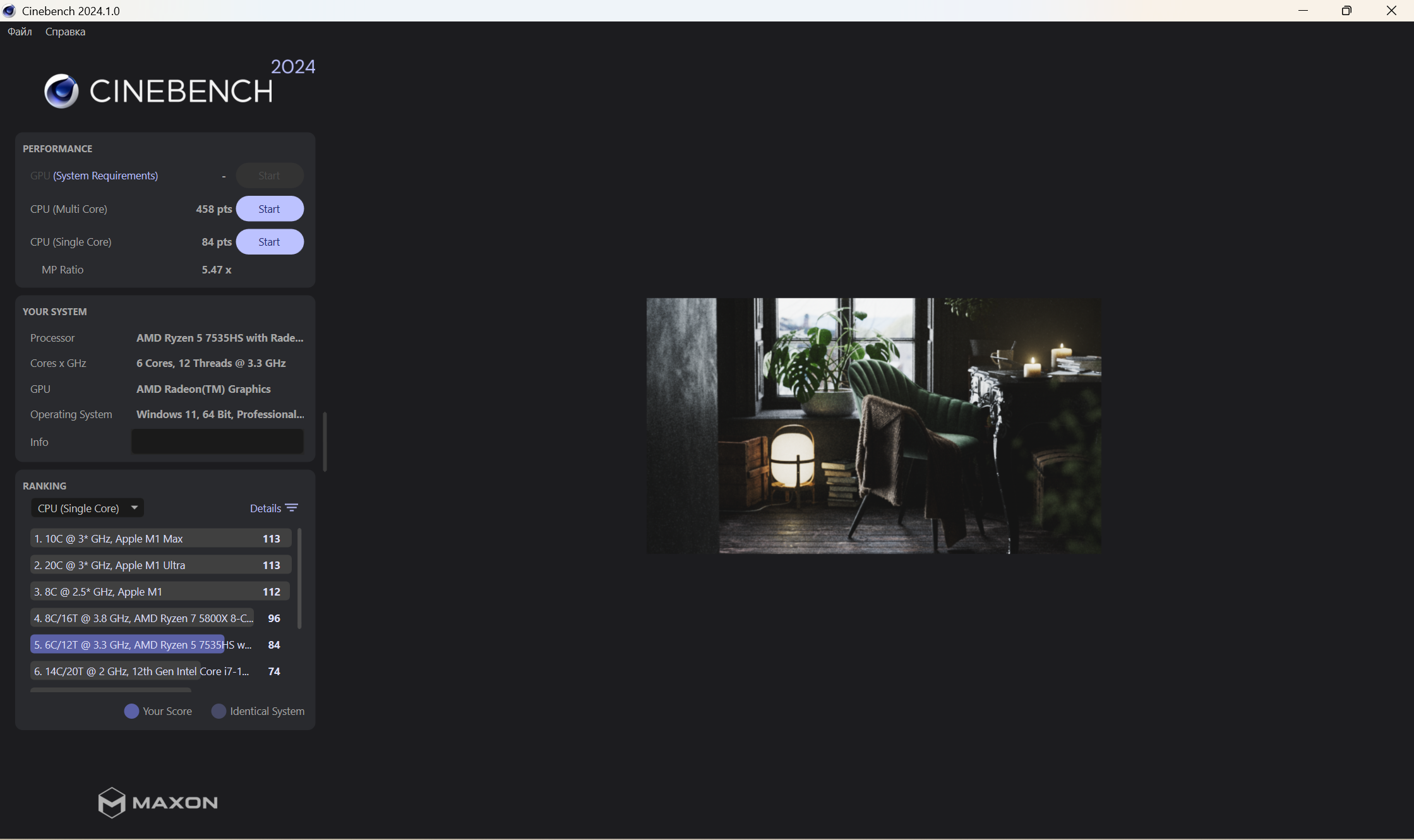 | Процессор | AMD Ryzen 5 7535HS, 6 ядер/12 потоков (Zen 3+, 6 нм) |