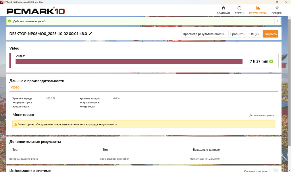 - Автономность хуже — если Ninkear S14 продержится минимум 7 часов, а иногда 8 или даже 9, то Infinix Inbook Air Pro+ в равномерной нагрузке в видео или офисных задачах (на тёмной теме_ держится часов… в основном 6. Иногда 6.5 часов, но иногда и 5.5 часов. Как и на любом OLED, чем чаще на экране будут мелькать светлые тона (ну, не знаю, белая таблица в Excel или какое-то видео с яркими красками), тем быстрее будет выжираться заряд. И наоборот: если читать белые буквы на чёрном фоне, то ноут и под 7 часов протянет. Но не больше. И на IPS у Ninkear такой зависимости от того «сколько на экране светлых и сколько тёмных тонов» нет — независимо от типа картинки на экране автономность будет одинаковой.