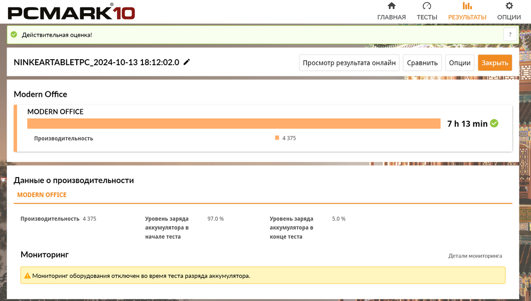 В планшетостроении таки есть прогресс, поэтому Ninkear T40 способен проработать на почти максимальной яркости (около 210 кд/м2) больше семи часов в режиме «Word, Excel, Chrome, видеосозвоны с использованием камеры». В игрушки получится играть больше трёх часов, правда, вы сами понимаете, что это будут в основном игрушки 10-12-летней давности.