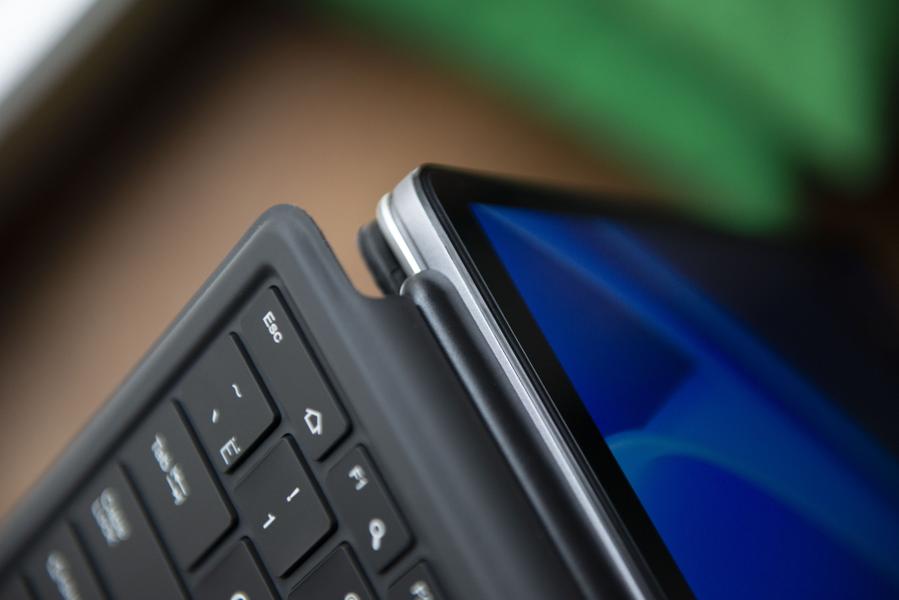 Не-а! Ninkear всё сделали максимально неудобно и вывели на клавиатуре уникальный магнитный разъем, расположенный справа. Если вы вдруг его потеряете, то я не совсем понимаю как его искать. Или если вы уехали куда-нибудь в отпуск и забыли его дома? Готовьтесь набивать текст через экранную клавиатуру планшета.