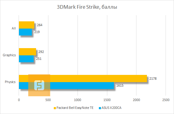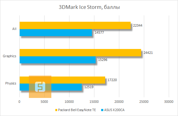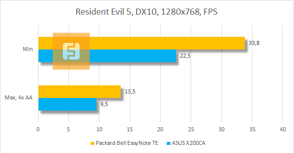 Еще одна чисто процессорная задача. Лэптоп от Packard Bell естественным образом опережает ASUS X200CA, однако результат более чем скромный, всего 10 FPS.