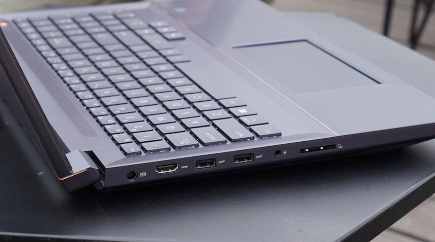 Но вернёмся к "обычным" StudioBook и посмотрим на набор портов. Как видно по фотографиям, компромиссов в StudioBook нет - тут и три USB 3.0 в формате USB-A, два порта Thunderbolt 3, полноразмерный HDMI, RJ-45, картридер, гибридный 3,5-мм разъём для наушников/гарнитуры.