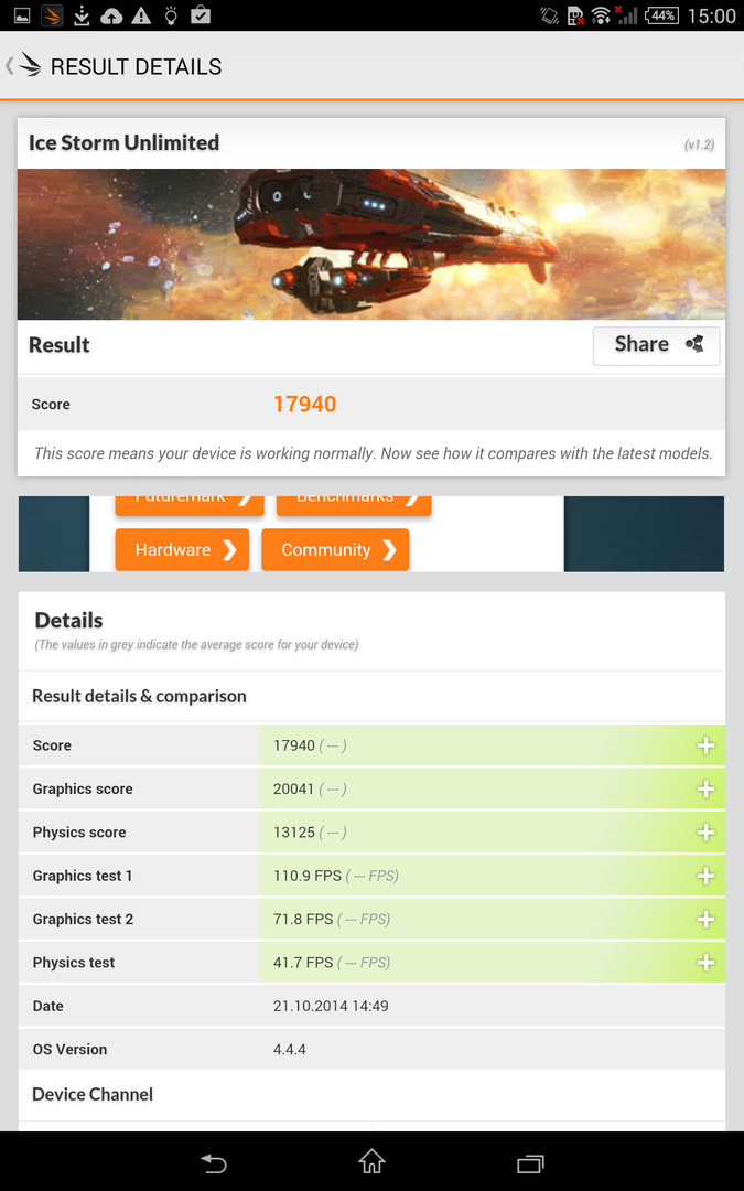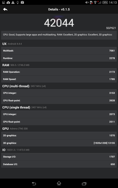 Результаты тестирования Sony Xperia Z3 Tablet Compact в AnTuTu Video