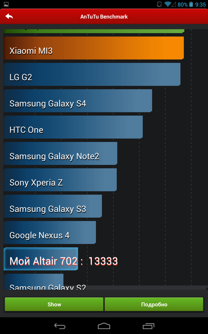 В нашем случае Vega 781 демонстрировал не самые солидные для MT8389 показатели — трудно судить, было ли это проблемой оптимизации прошивки или теплоотвода на корпусе, но Altair 702 с «морально устаревшим» чипом обогнал архитектурно идентичного сородича во всех тестах.