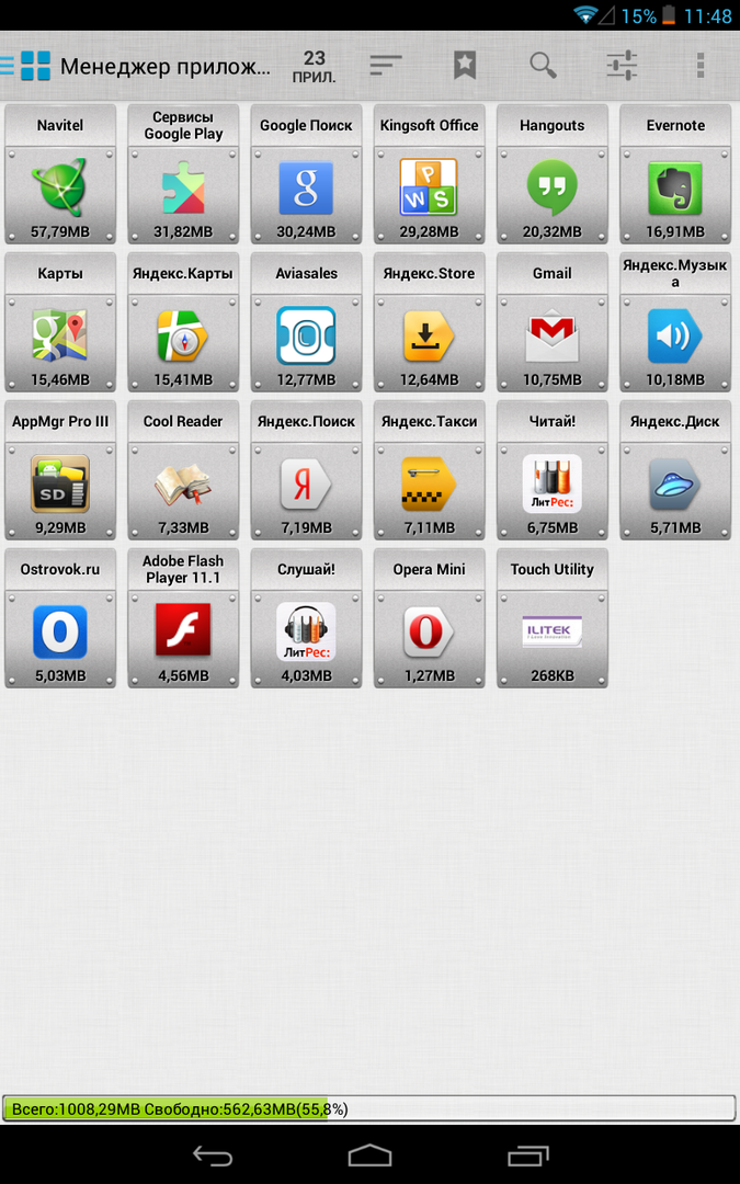 Список предустановленных приложений не так уж мал, при этом все приложения русскоязычные и действительно полезные. Сервисы «Яндекса», онлайновые библиотека «Литрес» и читалка Cool Reader, заметки Evernote, бронирование гостиниц с помощью Ostrovok и авиабилетов — с помощью Aviasales. Наконец, бесплатный и общепризнанный плеер MX Player и столь же популярный офисный пакет Kingsoft Office. Не считая бесполезного триального Navitel, для которого пользователям ещё придётся разыскивать карты, все предустановленные приложения ненавязчивы. При желании их можно без труда удалить.