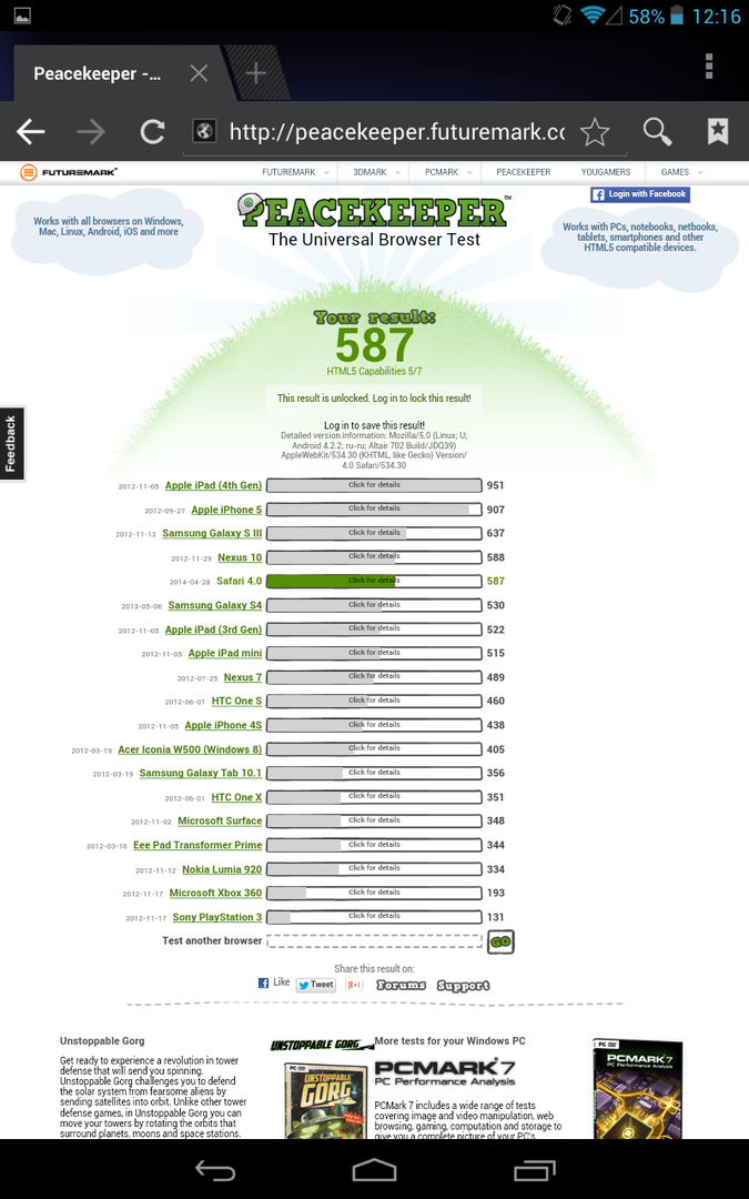 Чувствительность антенн 3G и Wi-Fi нареканий не вызывает: планшеты продемонстрировали средние показатели. А вот с уровнем приёма GPS всё не так однозначно. Vega 781 здесь выигрывает у Altair 702, но оба не впечатляют. Ситуация с качеством приёма GPS в чипах MT6575, 6577 и 6589 уже давно стала больным вопросом владельцев бюджетных смартфонов и планшетов. Синхронный запуск Altair и Vega показал, что восьмидюймовая модель находит первые спутники уже в течение 7-10 минут, а Altair для этого требуется как минимум полчаса. При этом спутники регулярно исчезают из списка, а функцию A-GPS и помощь сотовых вышек в определении местоположения планшет не использует. Часть вины за такой провал лежит на производителе антенны GPS внутри устройства, часть — на некорректной настройке EPO, в результате которой планшет воображает, что он находится в далекой китайской провинции и ищет координаты спутников согласно их расположению на орбите над Китаем. Любители экспериментов могут попробовать исправить ситуацию, заняться редактированием EPO и пробовать подменить библиотеку libdvm.so для лучшей точности позиционирования в процессе работы — инструкции широко доступны в Сети.