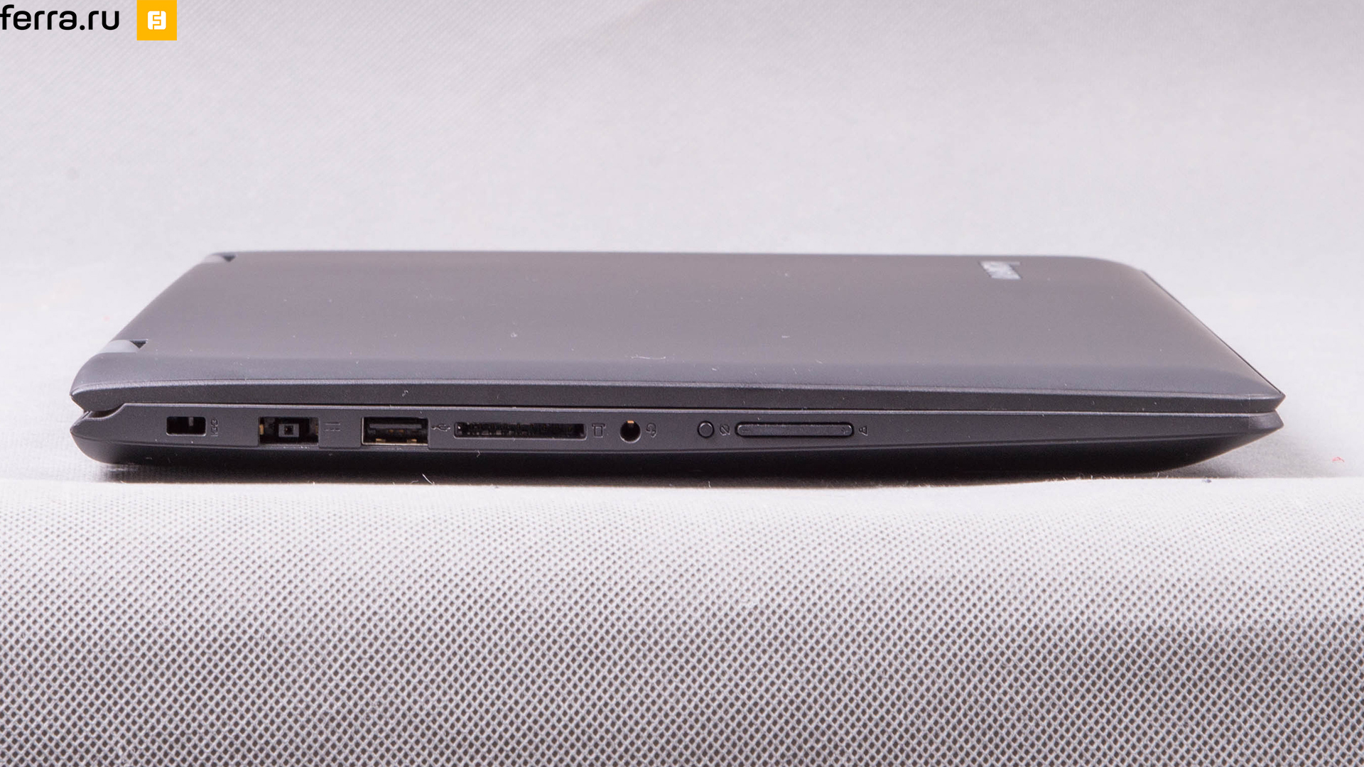 От планшетов Lenovo Yoga 500 достался дисплей-зеркало, зато от ноутбуков — большое количество портов. Правая грань даже имеет разъём RJ-45 и полноценный HDMI, не говоря уже о двух USB 3.0. Здесь же поместилась маленькая элегантная кнопка включения со встроенным светодиодом, который меняет цвет в зависимости от того, идёт ли в данный момент зарядка. На противоположной грани находится кард-ридер, качель громкости, кнопка блокировки автоповорота изображения, раритетный порт USB 2.0 и такой же по форме, но иной по содержанию — разъём для подключения зарядного устройства.