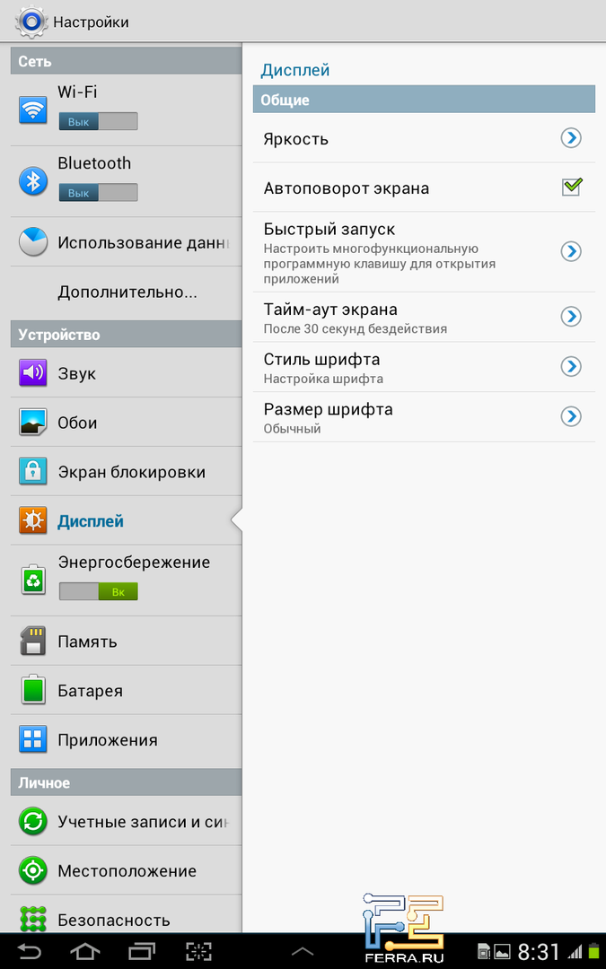 Информация о системе на Samsung Galaxy Tab 2 10.1