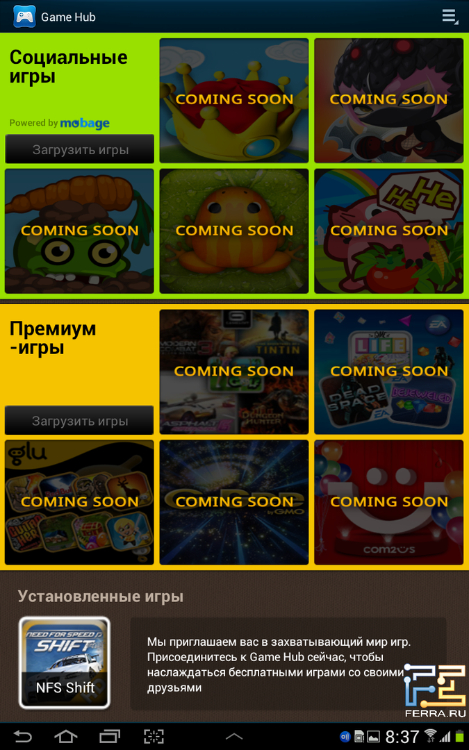 Кроме того, в поставке есть четыре игры: Need For Speed Shift (требуется закачка кэша под 300 МБ), Shaolin Jump, Where Is Wall и Yumsrers.