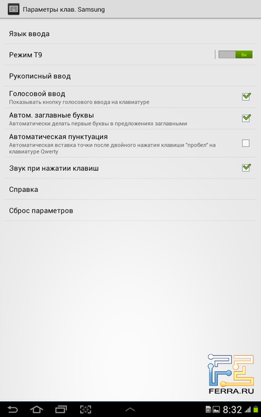 Настройки клавиатуры на Samsung Galaxy Tab 2 10.1