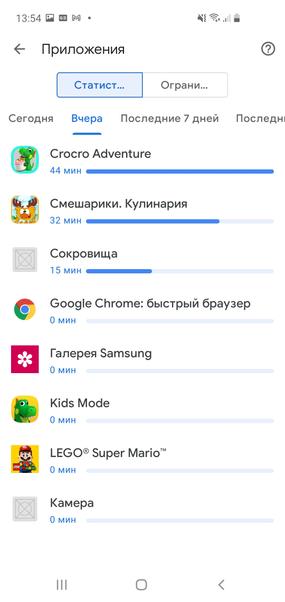 Статистику потребления контента ребёнком я наблюдал через Family Link на своём смартфоне. Там же можно задавать ограничения, в том числе, раздельно на каждое приложение. Отмечу, что за время тестирования ни разу ограничением не стал внезапный разряд планшета — это снова к вопросу об автономности.