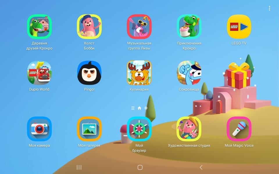 Поскольку основное предназначение именно данного комплекта — это дети, то стоит отдельно поговорить и о детском контенте, поставляемом вместе с планшетом. Тут Samsung подошли к вопросу основательно, предложив годный контент от партнёров, включая Смешариков и даже Lego. Честно говоря, я думал, что после включения планшета начну качать из Google Play для ребёнка всякие развивающие игры и прочее, но оказалось, что всё самое необходимое уже есть. Правда, в виде ярлыков — т.е. качать всё же пришлось, но достаточно было кликнуть на ярлык.