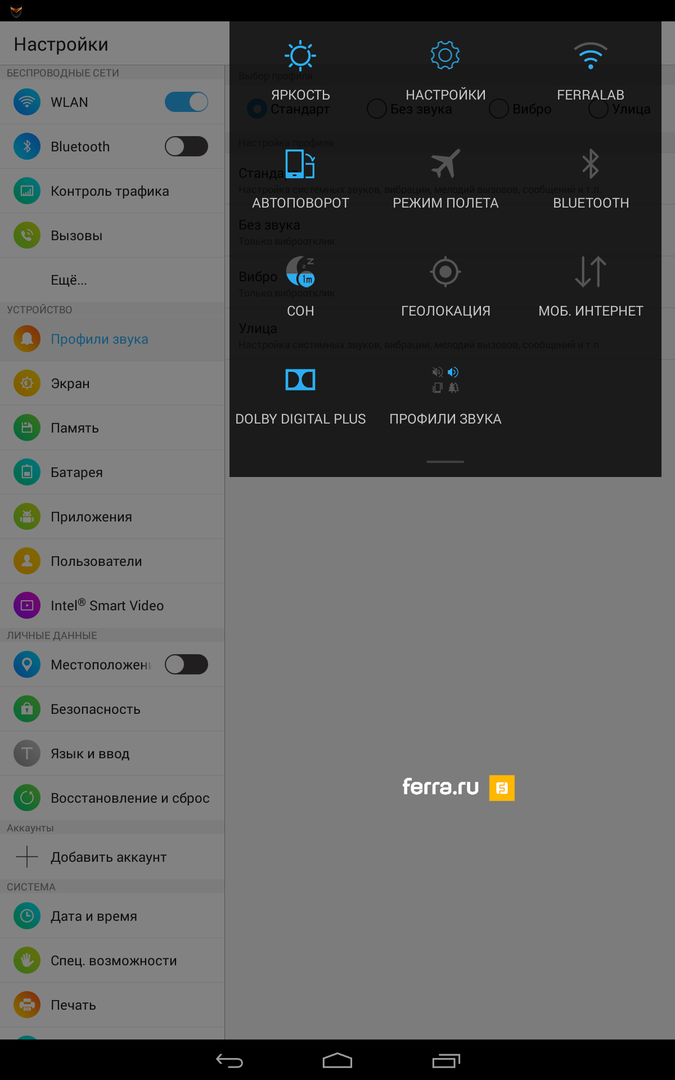Меню настроек Lenovo TAB S8-50LC