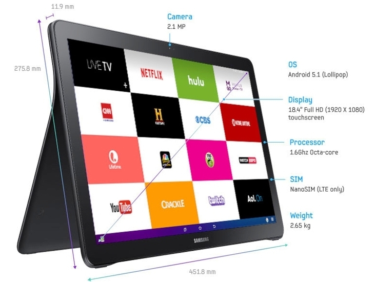 Samsung старается не уточнять, чем Galaxy View является на самом деле — планшетом, компьютером-моноблоком, фоторамкой на стероидах или чем-то ещё. Весь упор создатели делают на предустановленную оболочку, в которой поверх Android Lollipop натянут интерфейс с кучей телеканалов и сервисами потокового видео. Мол, идеальный «заменитель телевизора» получился.