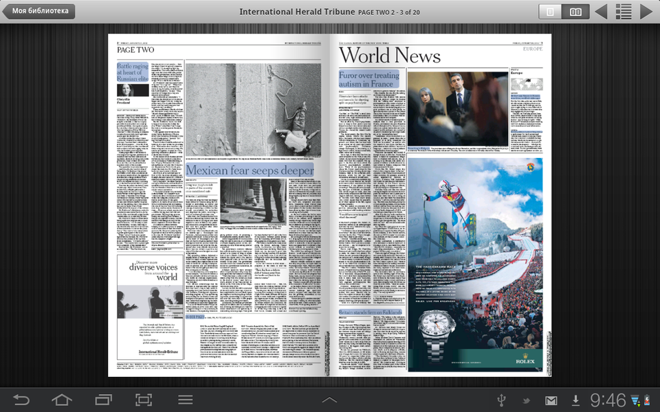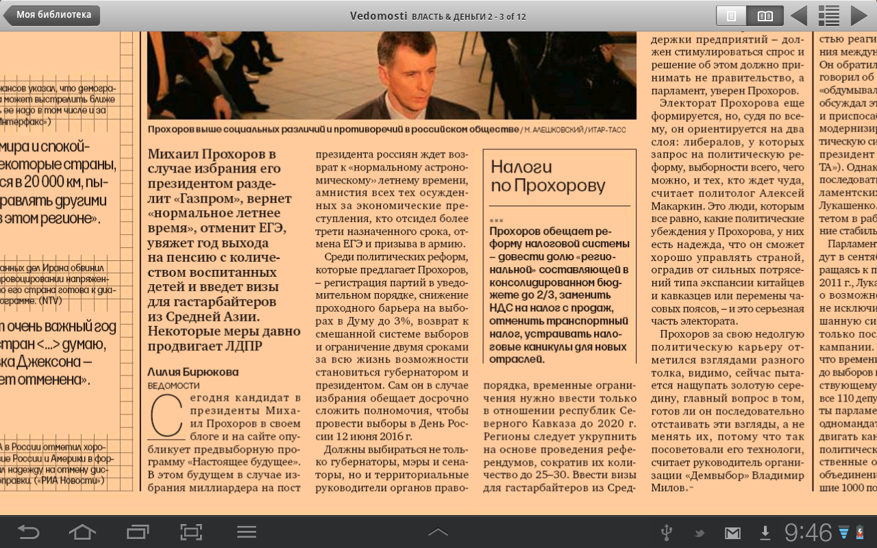 Конечно, шрифты мелковаты для чтения сразу всего газетного листа, однако при желании текст можно приблизить и вглядеться в подробности. Выглядят выпуски благодаря замечательному AMOLED-экрану просто отлично.