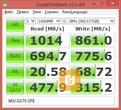 Разница в производительности накопителей двух ноутбуков огромна, если смотреть на результаты CrystalDiskMark, и просто заметная, если мерить «на глаз» по скорости запуска приложений и загрузки игровых уровней. Причины тут две. Во-первых, MSI GS70 2PE использует RAID-массив из SSD. Во-вторых, у Razer Blade не самый удачный твердотельный накопитель, который определённо прикидывается жестким диском, когда дело доходит до последовательной записи данных. Хорошо, что хотя бы скорость последовательного чтения у него на уровне современных хороших SSD. В общем, эта та часть Razer Blade, которая, в отличие от всего остального, совсем не удивляет своей продвинутостью.