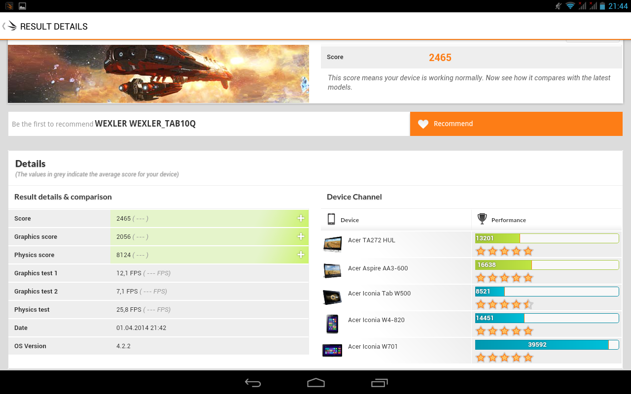 Результаты тестирования Wexler.TAB 10q в AnTuTu Benchmark