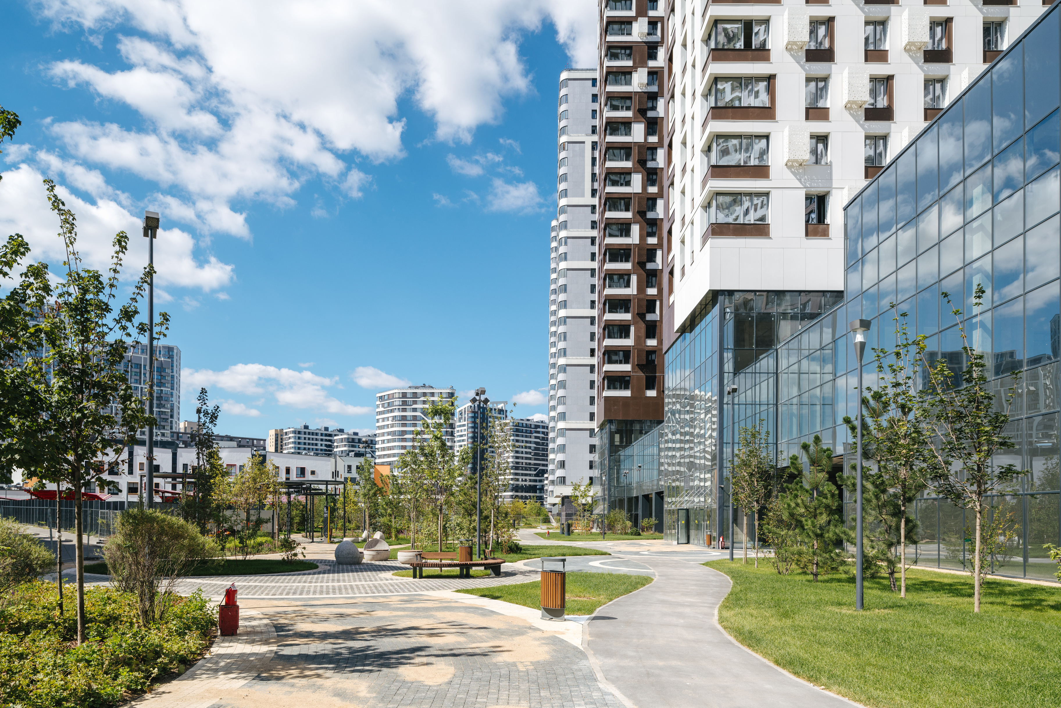 Но вот дворы и придомовая территория в проекте «Символ» устроены иначе. По фронту застройки организованы районные проезды (и нет, это не десятиполосные шоссе), на которых удобно подъехать вплотную к подъезду на такси. А для размеренной жизни и отдыха после тяжелого рабочего дня во всем вашем распоряжении внутренний двор-парк «Зелёная река», площадью 10 га.