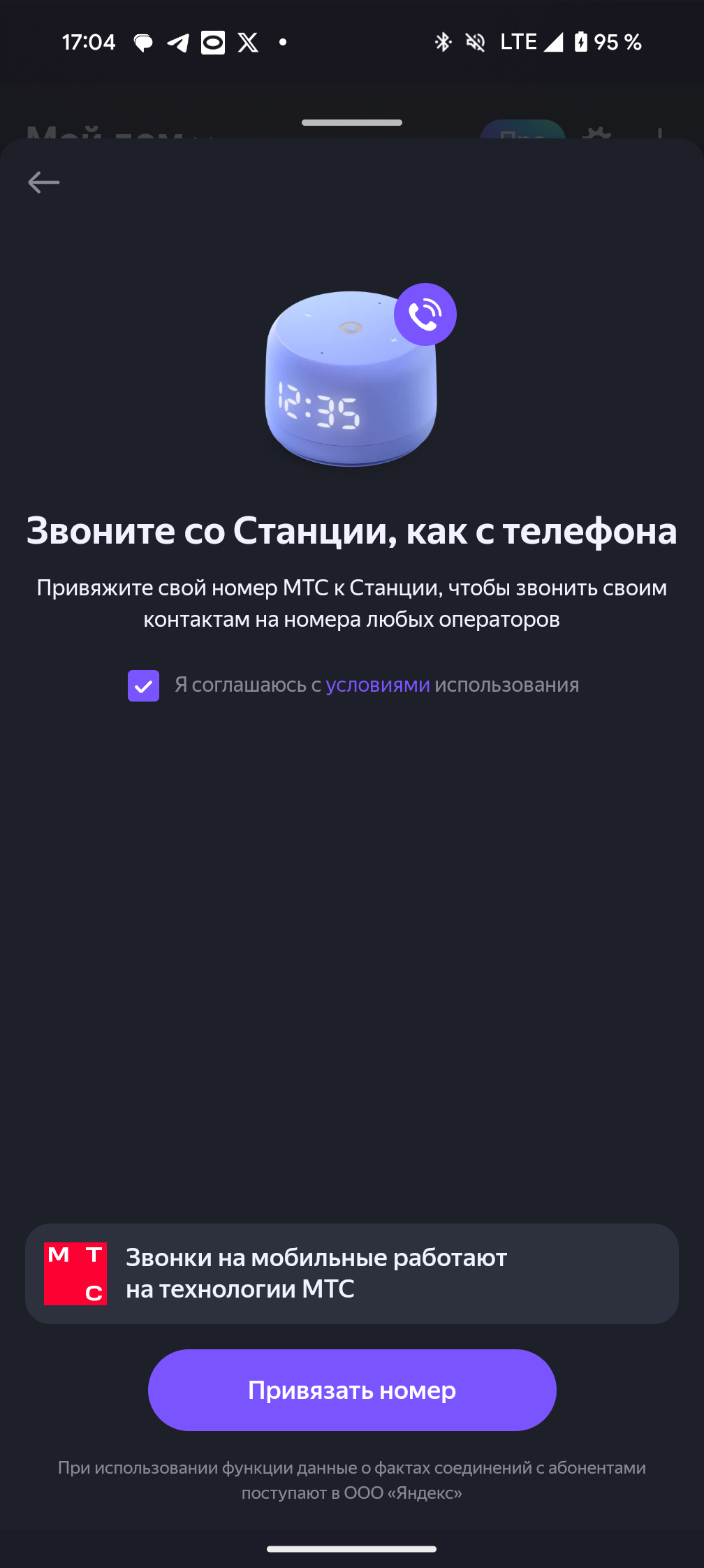 Из интересного — коллаборация (если так можно назвать) Яндекса и МТС. Можно привязать ваш номер мобильного телефона и делать звонки друзьям голосом. Непонятно, почему поддерживается только один оператор из четырёх федеральных, хотелось бы видеть расширение этого списка.