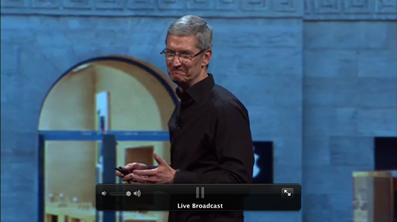 [20:51] И. Р.: Кстати, сегодня будет первая презентация продуктов, сделанных без участия Стива Джобса. Даже прошлогодний iPhone 5 он, говорят, успел благословить. Тим Кук, твой выход!