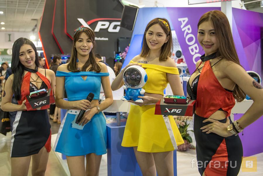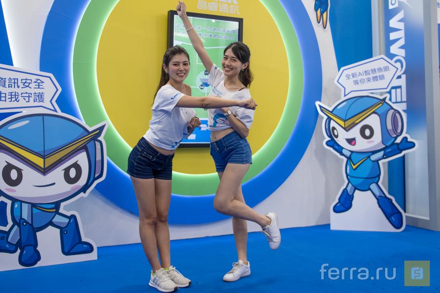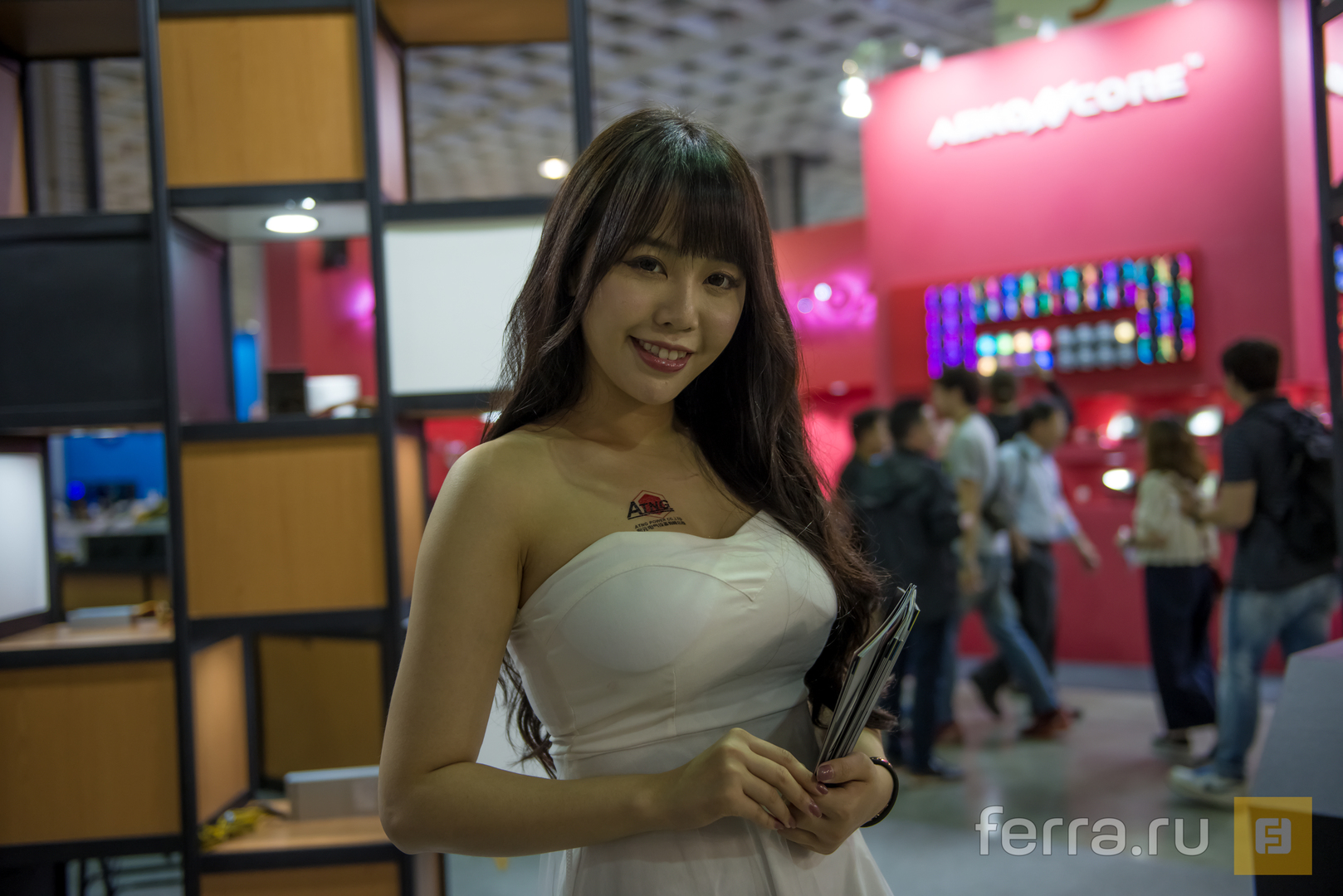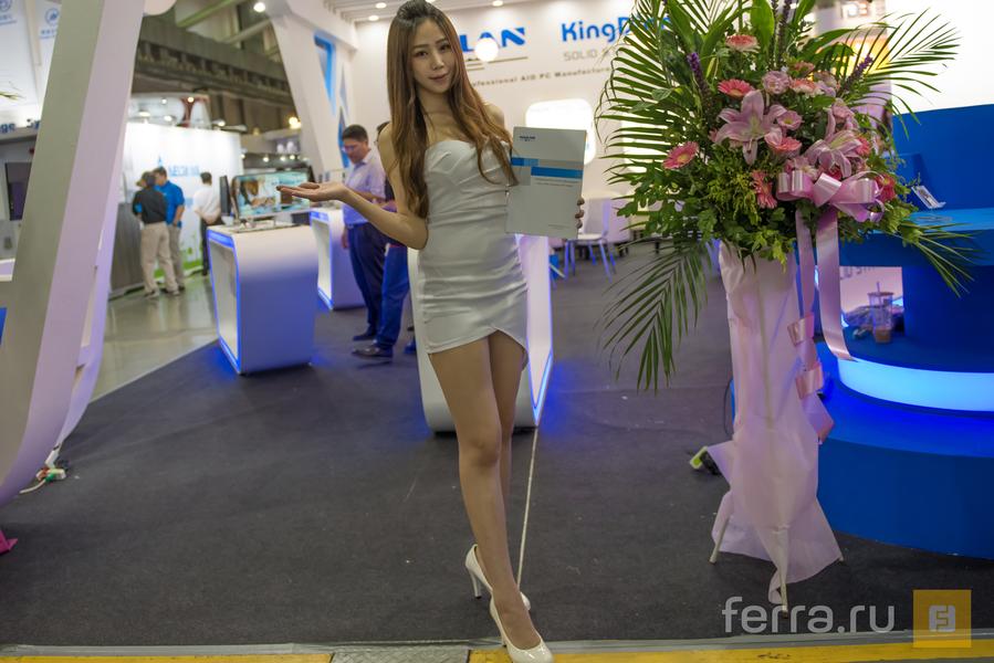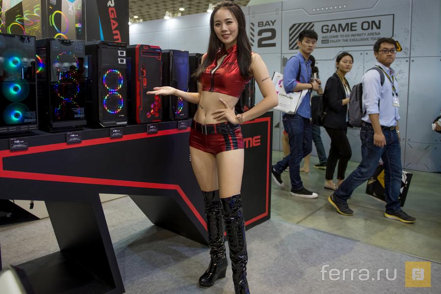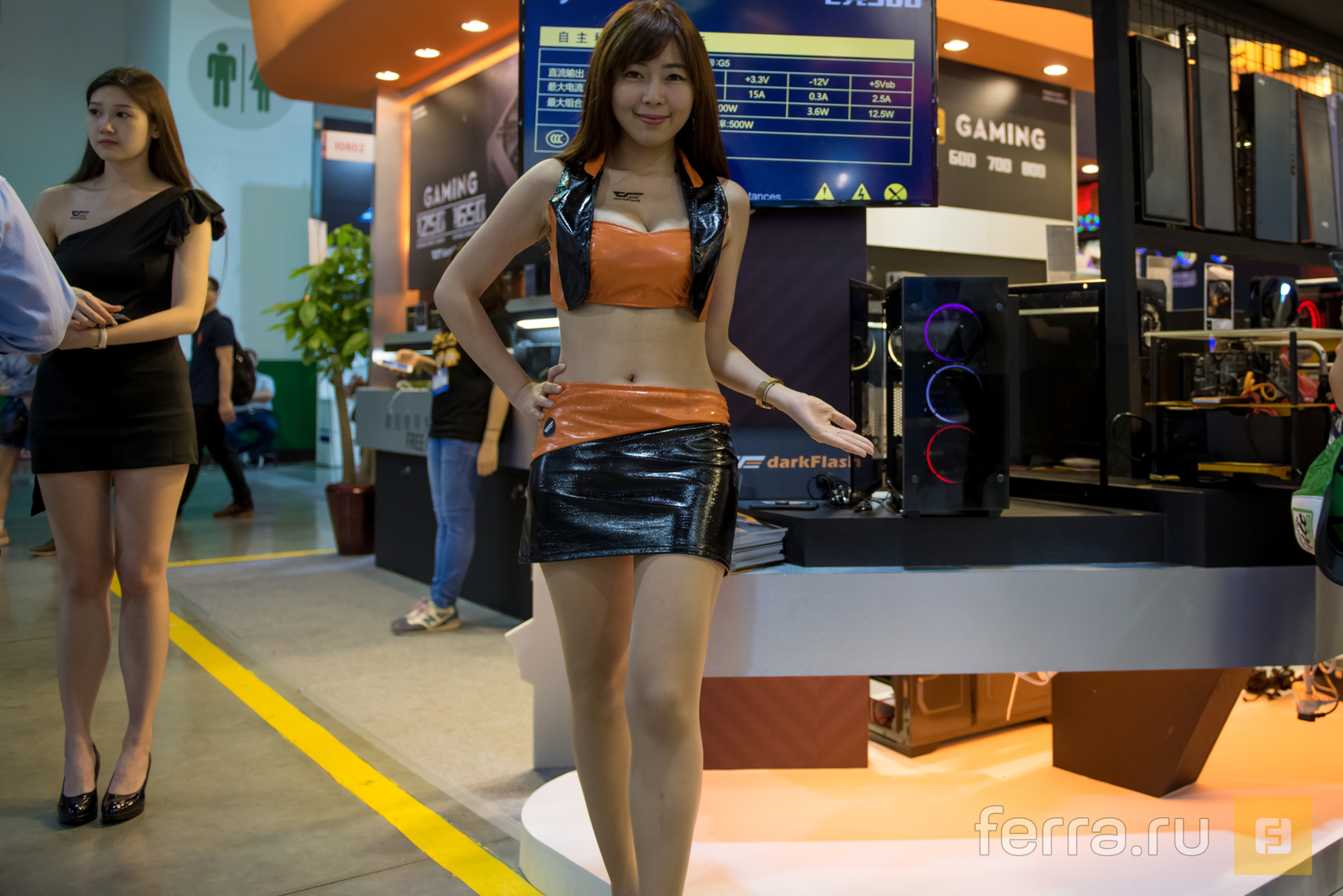 Когда-нибудь девушек на выставке запретят очередные «оскорблённые в чувствах» странные люди. А сейчас милые леди у стендов компьютерных компаний украшают картину лучше разрисованных компьютеров с подсветкой и привлекают журналистов эффективнее, чем рекламные буклеты. Хорошо быть обзорщиком — посещаешь выставку компьютеров и модельный показ одновременно. Но читателям Ferra быть обзорщиками не обязательно — просто взгляните, как выглядит выставка электроники, если из неё убрать всю электронику, и порадуйтесь вместе с нами.