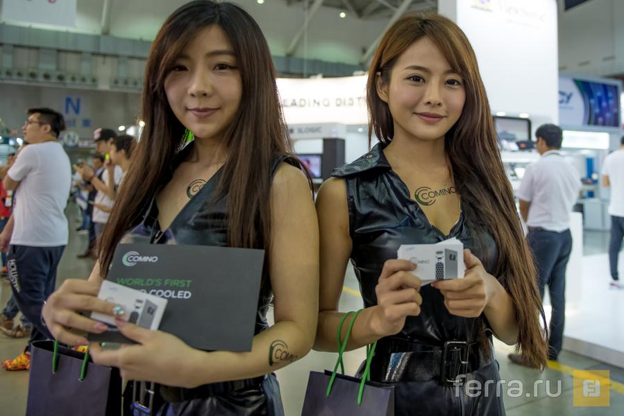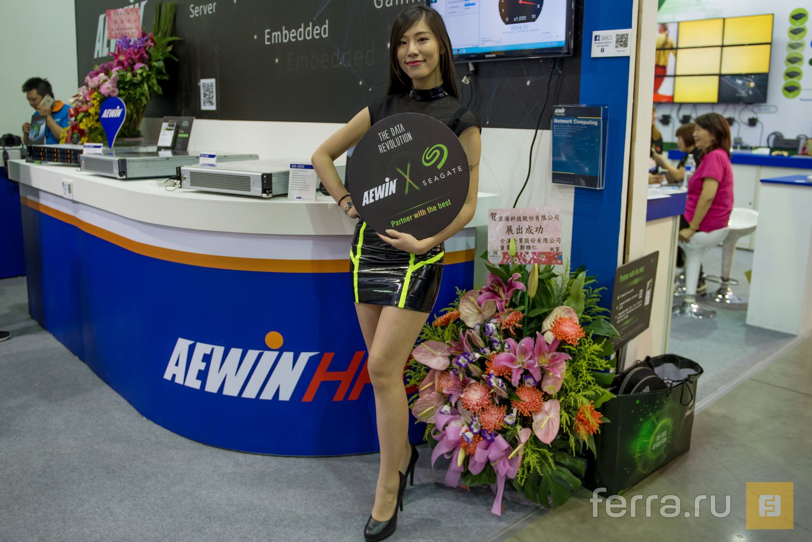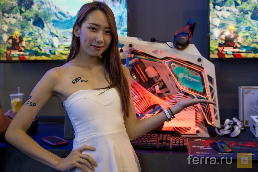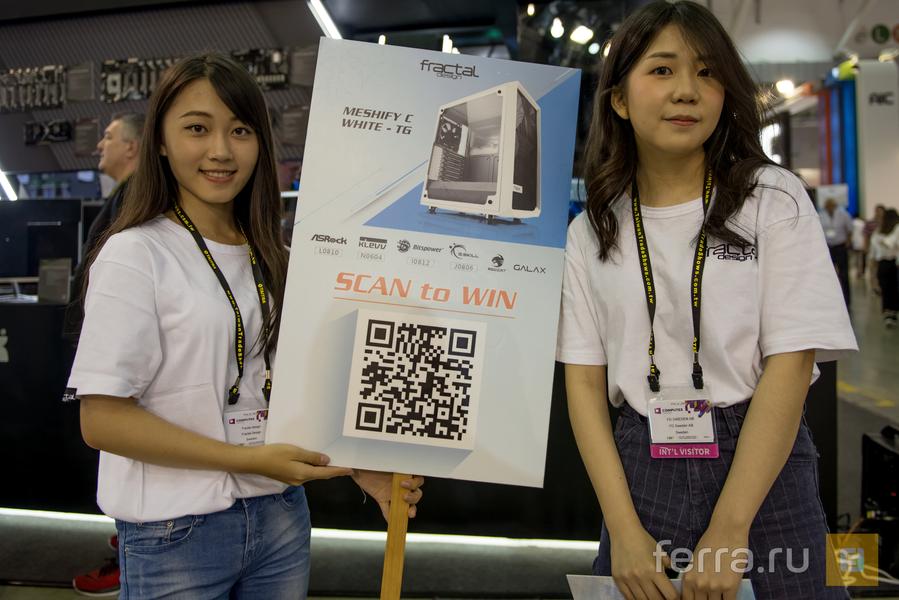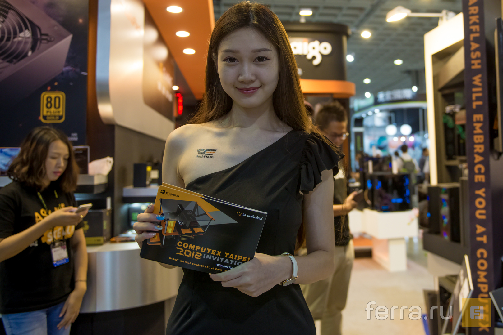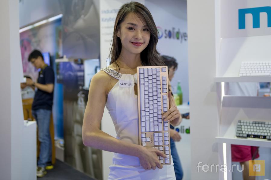 Когда-нибудь девушек на выставке запретят очередные «оскорблённые в чувствах» странные люди. А сейчас милые леди у стендов компьютерных компаний украшают картину лучше разрисованных компьютеров с подсветкой и привлекают журналистов эффективнее, чем рекламные буклеты. Хорошо быть обзорщиком — посещаешь выставку компьютеров и модельный показ одновременно. Но читателям Ferra быть обзорщиками не обязательно — просто взгляните, как выглядит выставка электроники, если из неё убрать всю электронику, и порадуйтесь вместе с нами.