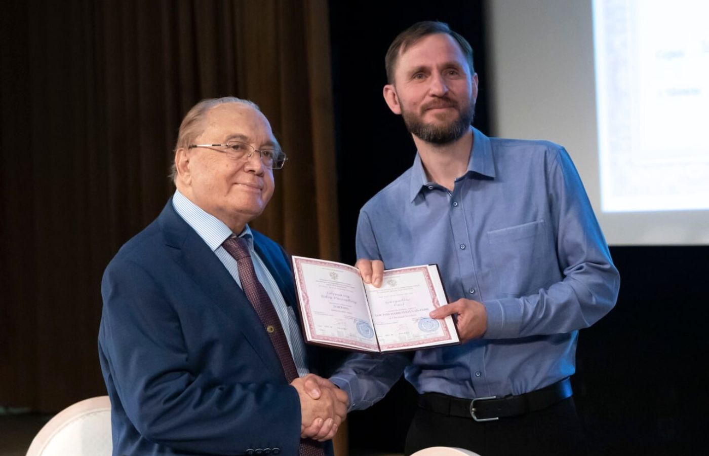 Диплом о присвоении учёной степени доктора химических наук Павел Гаврюшкин получил в июне из рук ректора МГУ академика РАН Виктора Садовничего