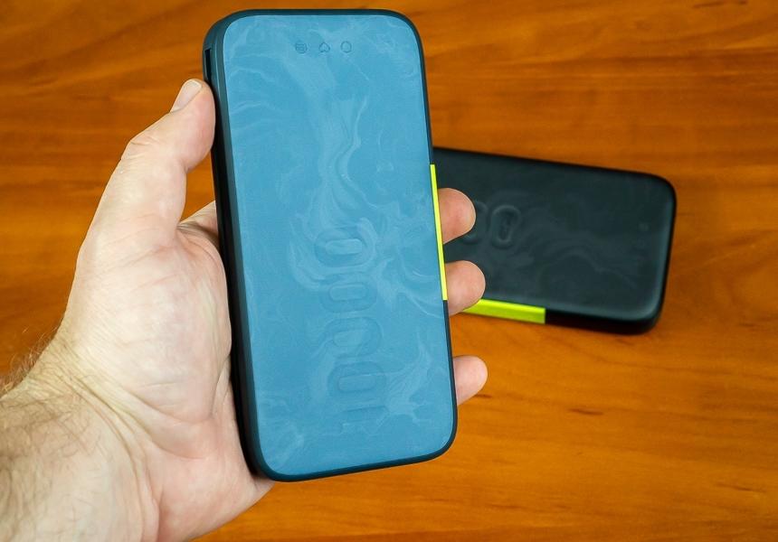 Дизайн у пауэрбанков InstantGo в меру брутальный, в меру стильный, но, будем честны, вряд ли кто-то будет их рассматривать и с пафосом выкладывать на стол в кафешке. Отмечу лишь, что покрытие корпуса — из софт-тач пластика, на ощупь приятное и при этом, судя по времени тестирования, не должно прям затираться. При этом, корпус изготовлен из переработанного пластика — во всяком случае, так уверяет производитель.
