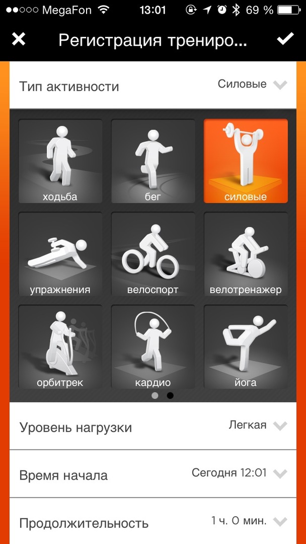 Вручную указывать в приложении можно не только виды спорта, но и пищу. Да-да, в обновлённой программе можно ввести то, что вы съели. Конечно, холодца или драников вы тут не найдёте, приложение пока не настолько адаптировано, но всякие овощи, фрукты, мясо — запросто. Просто выберите нужное блюдо, укажите его объем — и это тоже отразится на графике статистики.