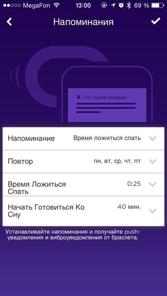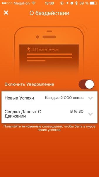 Кроме того, приложение поддерживает создание простых напоминаний — например, о том, что вам пора принять лекарство, поесть или просто время ложиться спать. А можно ещё установить уведомления о достигнутых целях или о бездействии.