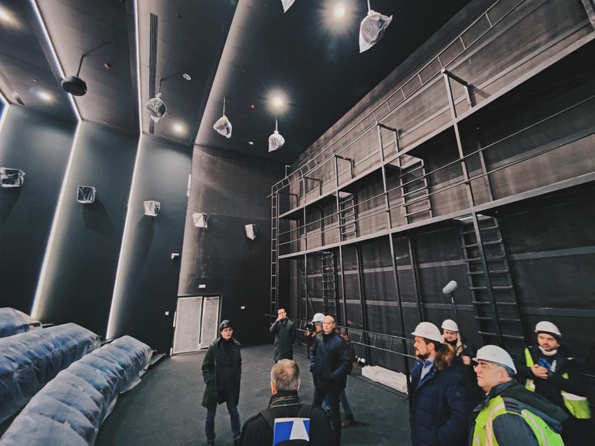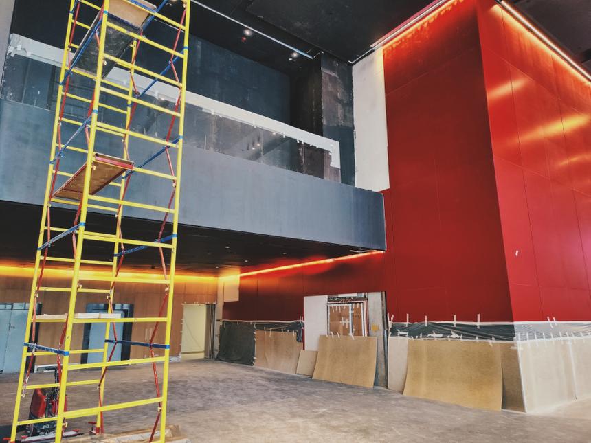 Главный зал пока далек от завершения работ, зато позволяет увидеть ход строительства и посмотреть, как все устроено под чистовой отделкой. Ширина экрана составит 20 метров, так что это не самый большой экран в Москве (в двух залах IMAX Laser экраны 30 метров), зато компания Dolby обещает выстроить на Мосфильме уникальный звук. Во-первых, для этого зла впервые в России будет задействовано максимальное для стандарта Dolby Atmos количество каналов, а именно — 64. Кроме того, первый раз для нашей страны (и всего лишь третий раз в мире) будет использована заэкранная система System 136 с ассиметричной конструкцией двухканального рупора высоких и средних частот.