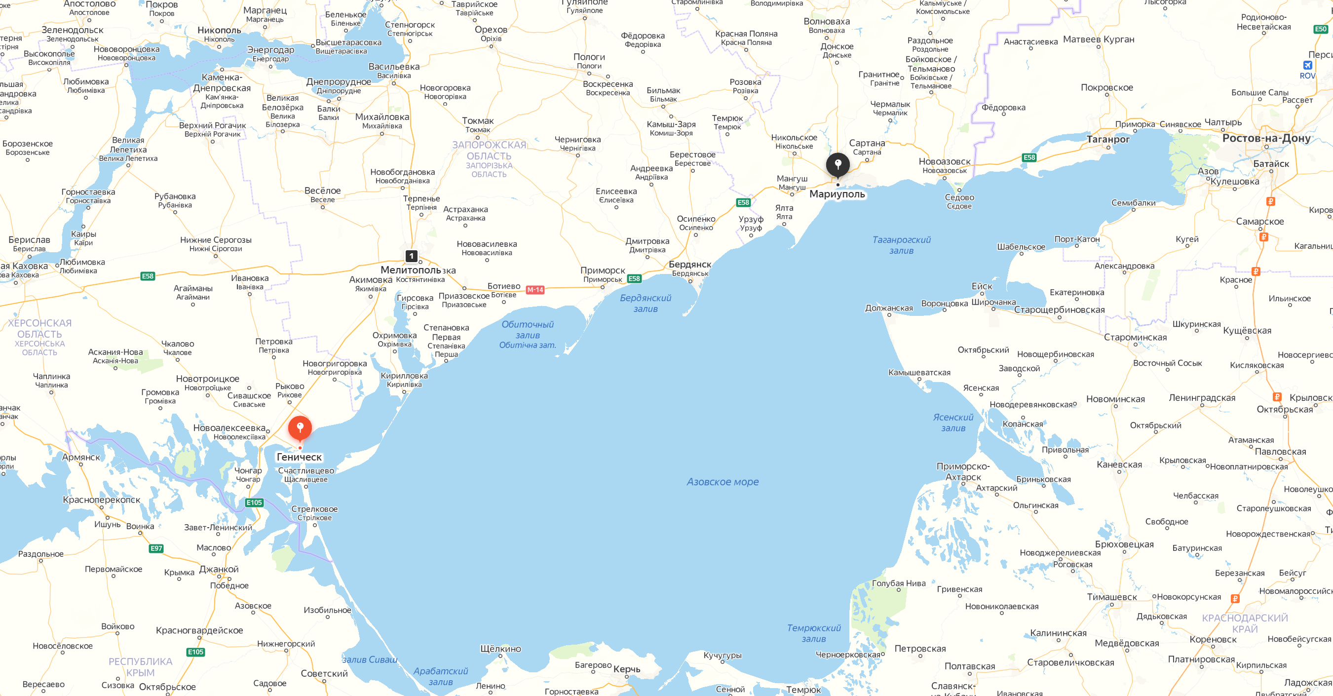 Южное направление как бы раздваивается, другая группировка пошла восточнее и 24 числа заняла приграничный Геническ, оттуда, судя по всему, планируется развивать наступление на Мелитополь, а потом на Мариуполь.