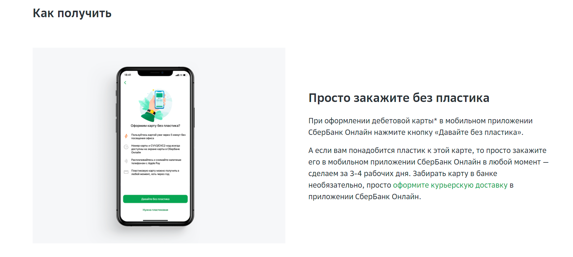 - Найдите в вашем банке опцию выпуска карты МИР. Можно реальной пластиковой (так дольше, зато будет возможность платить без смартфона), можно — виртуальной (если вам нужно побыстрее и чтобы оплата со смартфона внутри России точно везде работала)