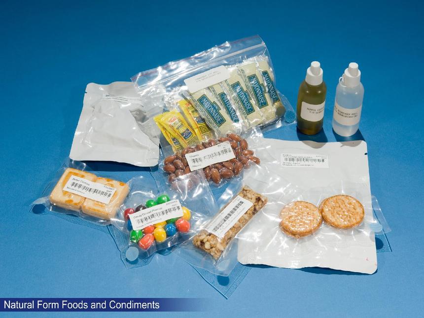 адаптированной для невесомости. Продукты должны быть тщательно упакованы, легко использоваться и не требовать сложной очистки. Кроме того, продукты не должны оставлять остатков и крошек;