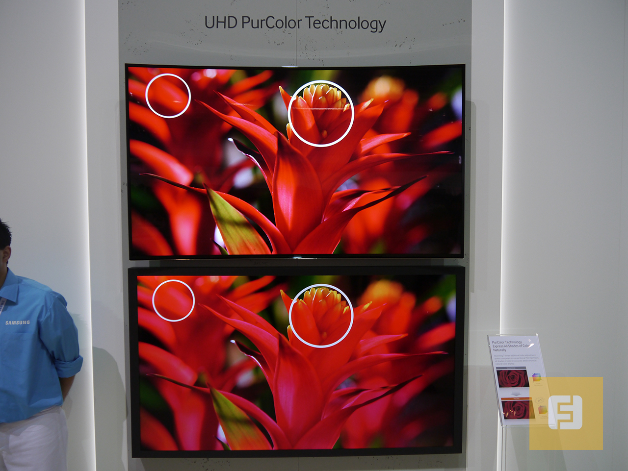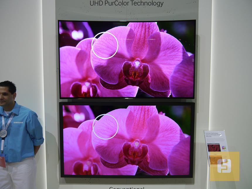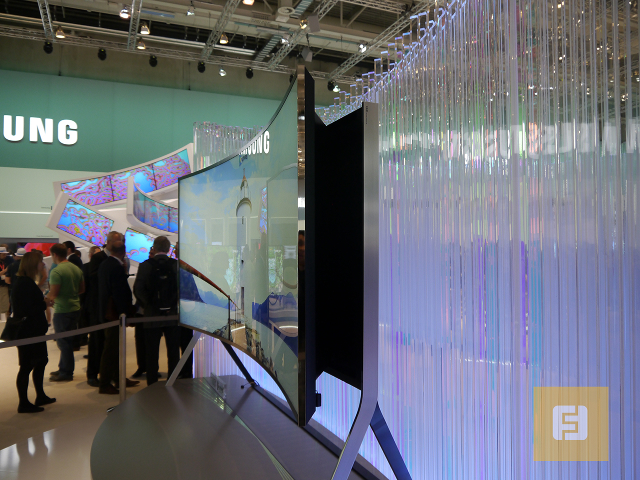 В материале, посвященном новой линейке 4К-телевизоров SONY BRAVIA, я уже приводил официальную статистику авторитетной компании GFK. Напомню, что по состоянию на июль 2014 года в сегменте телевизоров диагональю 50-59 дюймов верховодит Samsung, удерживая 44,5% рынка. А в срезе 60+ дюймов компания владеет уже 57,6%. Поэтому неудивительно, что телевизионный стенд Samsung оказался самым большим. Корейцы выкатили все, что только у них есть. Да вот только практически все модели уже давно находятся в продаже. Поэтому пристальное внимание обратили на себя прототипы. Первые два — это 105-дюймовые панели. Также было показано устройство с разрешением 8К. Остальное — OLED-телевизоры, от которых Samsung совсем недавно вроде бы сама открестилась. О них и поговорим.