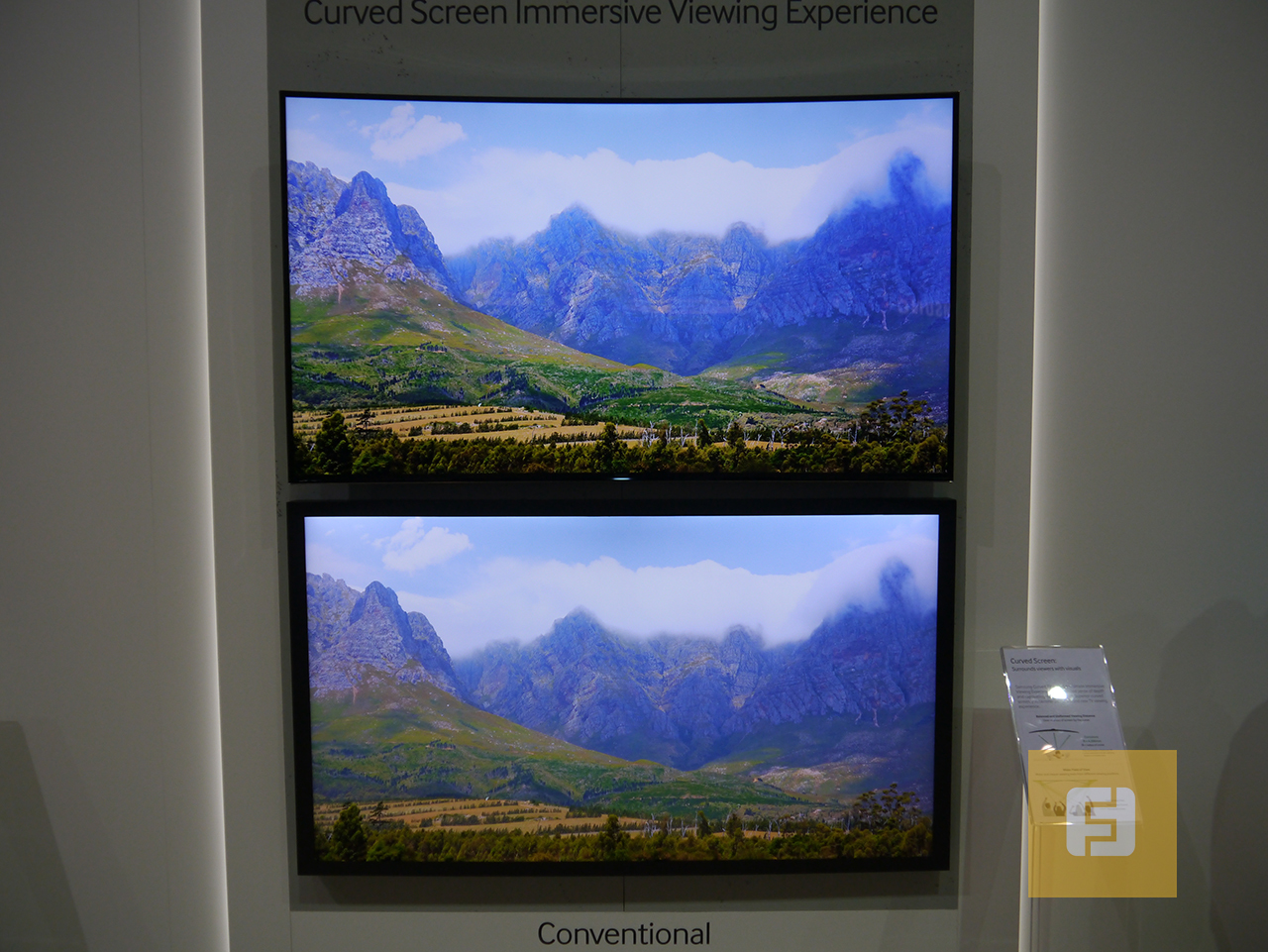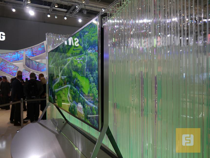 Вторая модель куда интереснее. С виду она может показаться плоской вариацией с теми же 105 дюймами. Однако этот девайс может по желанию изгибать экран. Да, нечто подобное еще зимой показала LG, однако вживую смотреть на деформирующуюся 105-дюймую «махину» — это очень захватывающе!