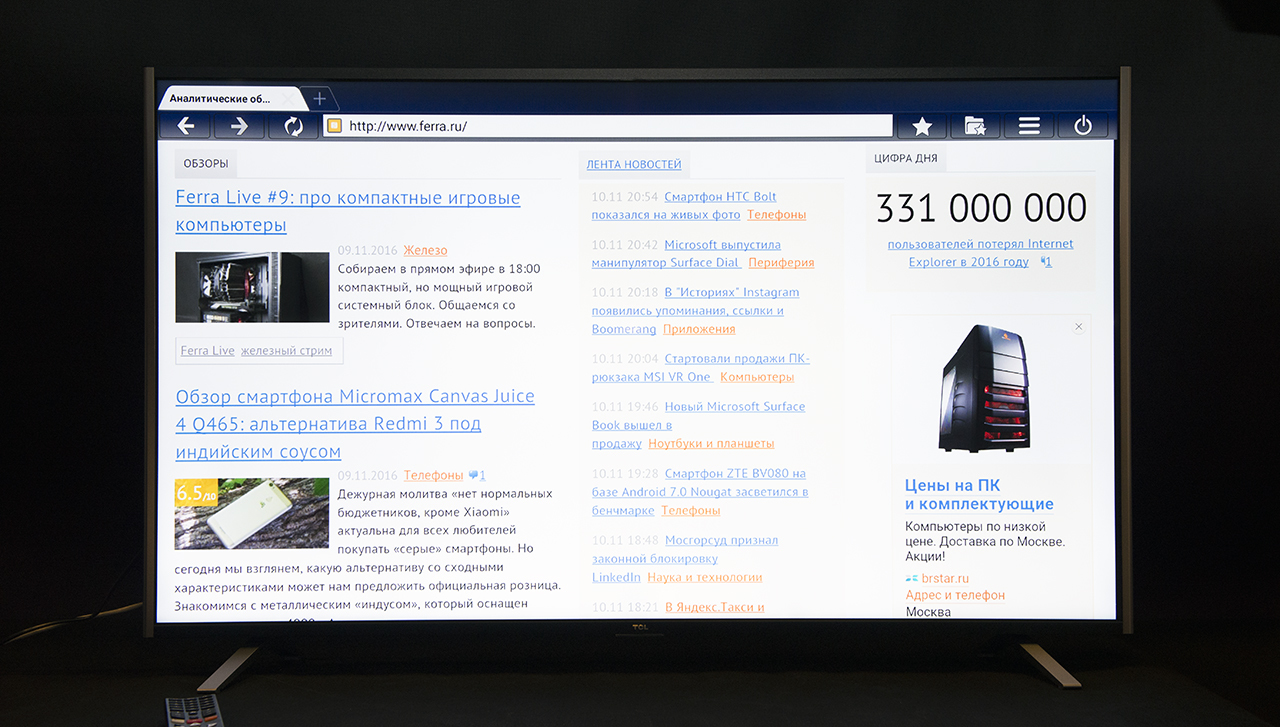 С Ultra HD все ясно. Но даже в 2016 году основная часть видеоконтента идет с меньшим разрешением. TCL L50C1US хорошо апскейлит изображение. Формат 1080p масштабируется великолепно, а 720p — вполне терпимо.