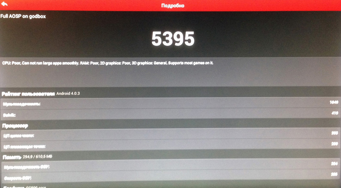 Некоторые популярные тесты, такие как Quadrant, GFX Bench, Vellamo, Epic Citadel и другие, на нашем медиаплеере пройти не удалось. Одни из них не запустились вообще, другие зависали или самопроизвольно закрывались в процессе теста.